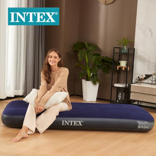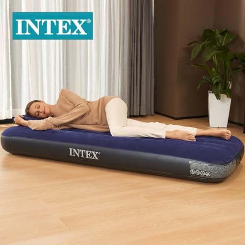 Intex - Intex Air Lock Single Inflatable Bed (Blue) With Air Pump