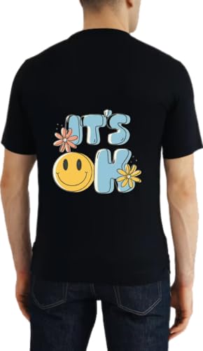 Generic - تيشرت مطبوع على الظهر بعبارة IT'S OK، لون أسود