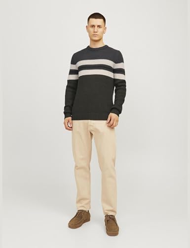 JACK & JONES - بلوفر ساندر منسوج برقبة دائرية ضيقة للرجال من جاك اند جونز