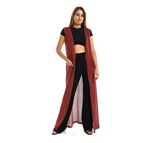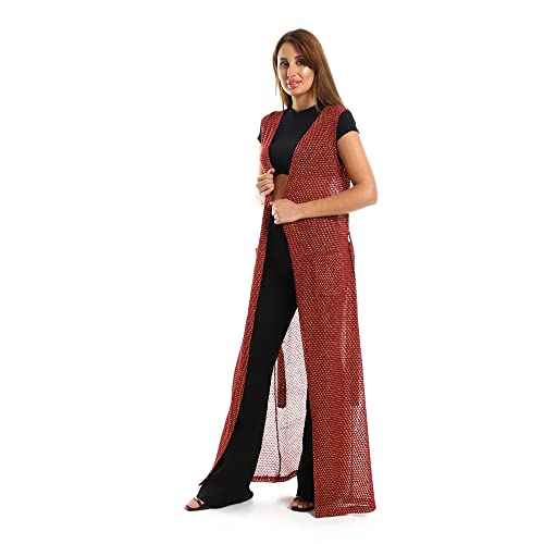 JAMILA - JAMILA Women Sleeveles Perforated Long Cardigan - Champaign SWEATER