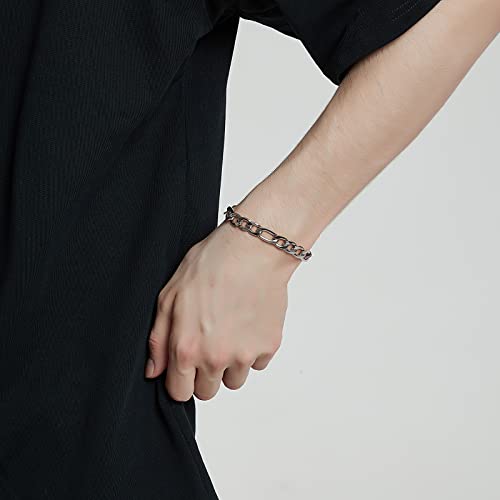 JAYUMO - إسورة من جايومو للجنسين، مصنوعة من المعدن، بلون فضي وأسود وتصميم بسيط، مقاس 19.05 سم