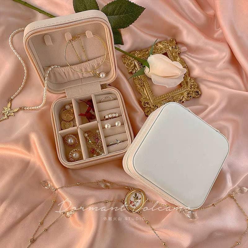 - Small Portable Travel Jewelry Box, Leather Ring Jewelry Organizer, Gift Box for Girls and Women
