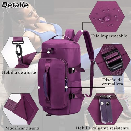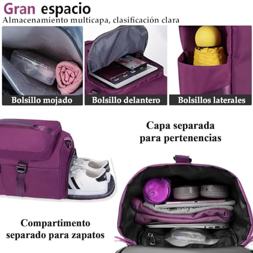 JIJO - JIJO Sports Suitcase Gym Bag with Shoe Compartment and Waterproof Bag, Travel Bag, for Men and Women, for Shoes for Travel, Yog etc (Dark Purple)