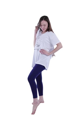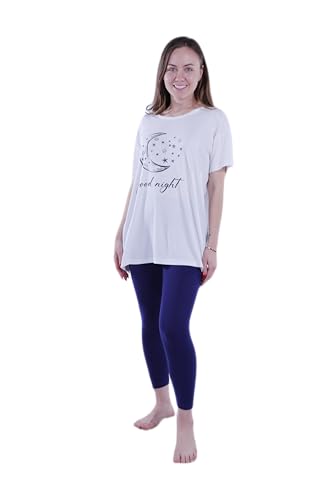 jil - طقم بيجامة مكون من تيشرت بأكمام قصيرة وبنطلون لجينجز ضيق للنساء من جيل، لون أبيض زاهي