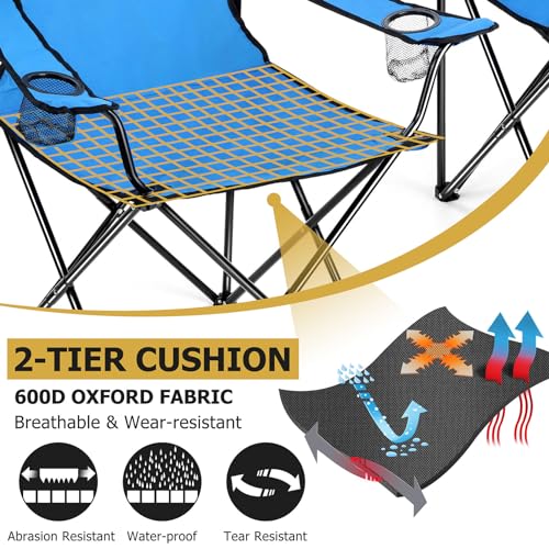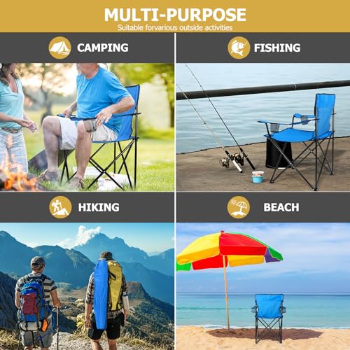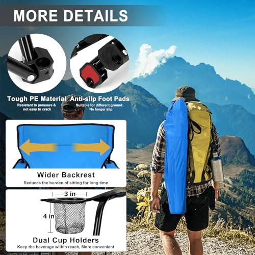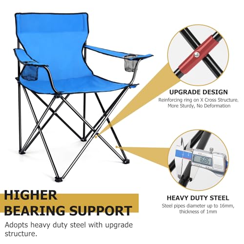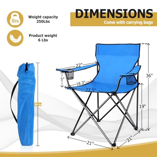Joyfair - Joyfair Blue Portable Camping Chair, Large Outdoor Folding Chairs for Beach, Fishing, Patio, Backyard and More Outdoor Sports, Heavy Duty Foldable High Back Chair for Adults, Carry Bag & Cup Holders