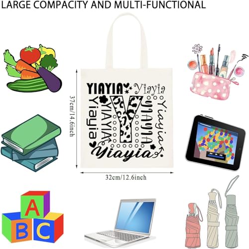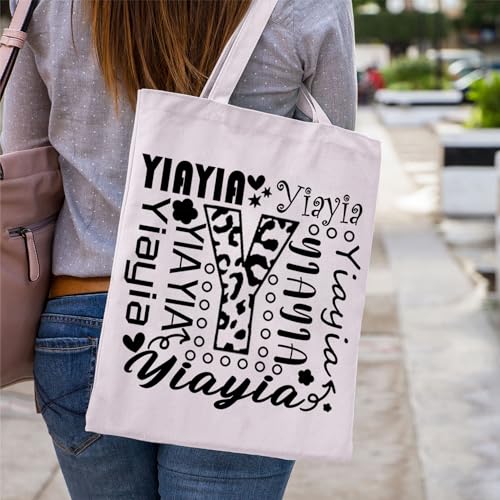 JTOUK - Yiayia Gift Yiayia Typography Canvas Tote Bag Travel Bag Shopping Bag for Grandma