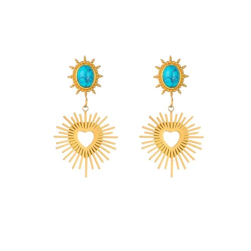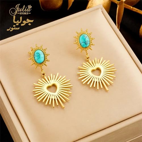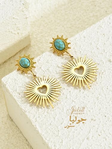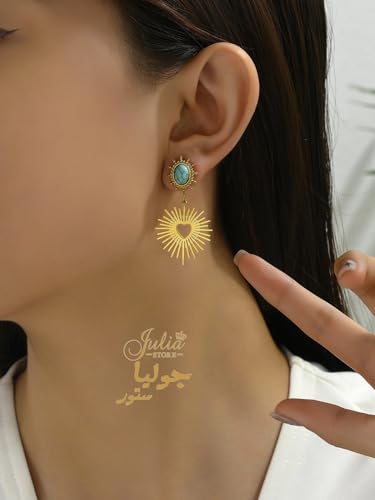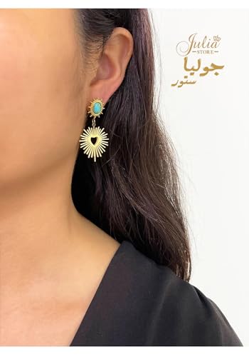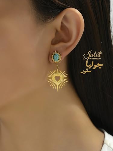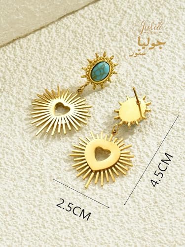 Julia Store - Julia Store 18K Gold Plated Stainless Steel Egyptian Vintage Love Asymmetrical Heart & Turquoise Dangle Drop Stud Earrings
