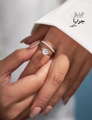 Julia Store - Julia Store 18K White Gold Plated Round Cut Trendy Luxury Eternal Love Solitaire 1.5 CT Cubic Zirconia Engagement Wedding Promise band Ring for Women