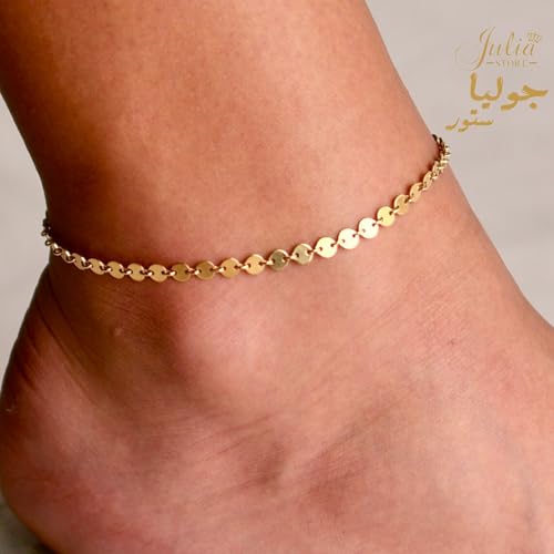 Julia Store - اساور كاحل انيقة للنساء مطلية بالذهب عيار 18 قيراط خلخال سلسلة بتصميم بسيط للشفاه للصيف والشاطئ من جوليا ستور