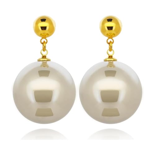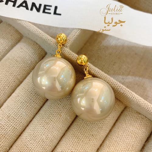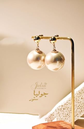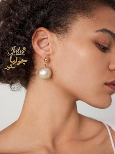 Julia Store - Julia Store Gold Plated Large Pearl Stud Earrings for Charm Women with Dangle Drop Lightweight Dainty Fashion Designer Style Stud, Gift Luxury Jewelry