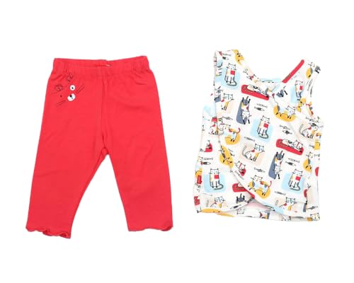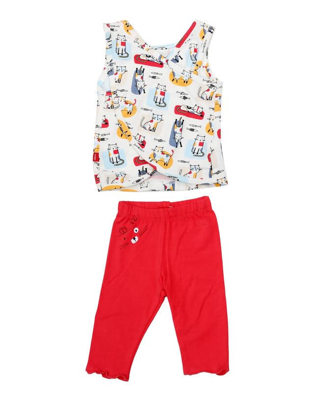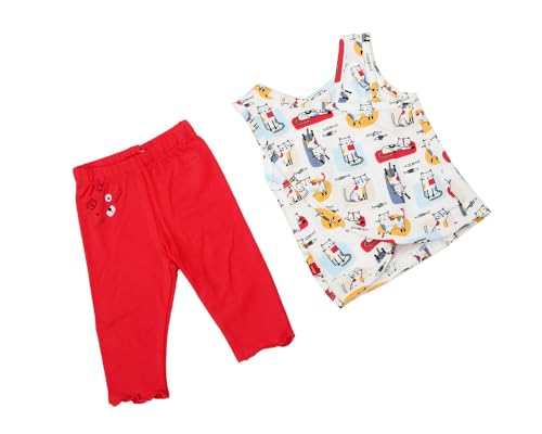 Generic - Junior Cotton Sleeveless Pajama Set Size 24 Months For Girls - Red & Off White