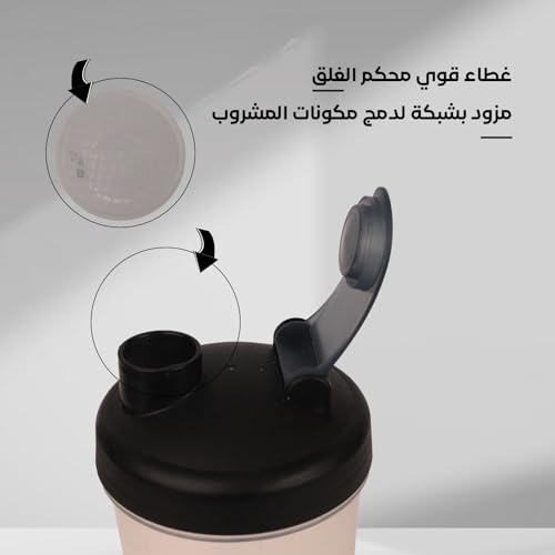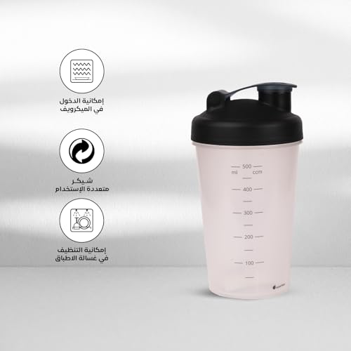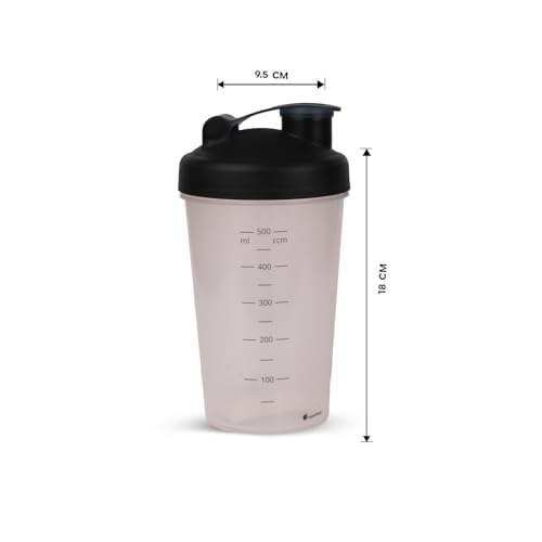 Juypal Hogar - Protein Shaker Bottle – 500ml Black – Leak-Proof Flip Lid, BPA-Free with Measurement Scale – Ideal for Gym & Smoothies – Made in Spain