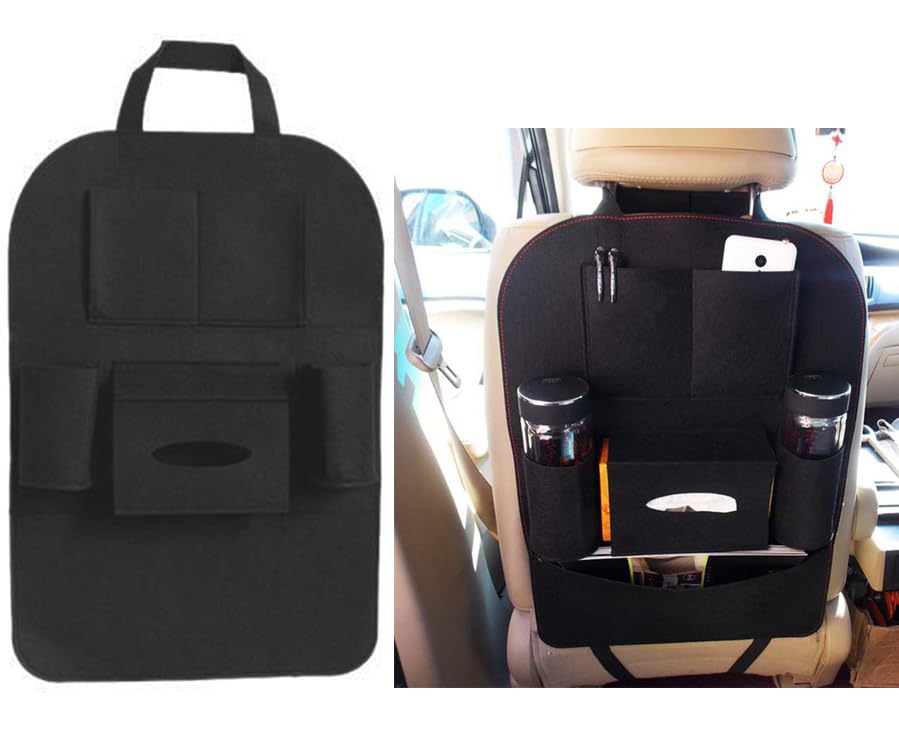 - BACK-CHAIR ORGANIZER: Keep your vehicle clutter free with the wide, durable car chair organizer. Together with non-slip straps on the bottom to prevent skidding. In addition, there are convenient storage pockets on the side for added organization.