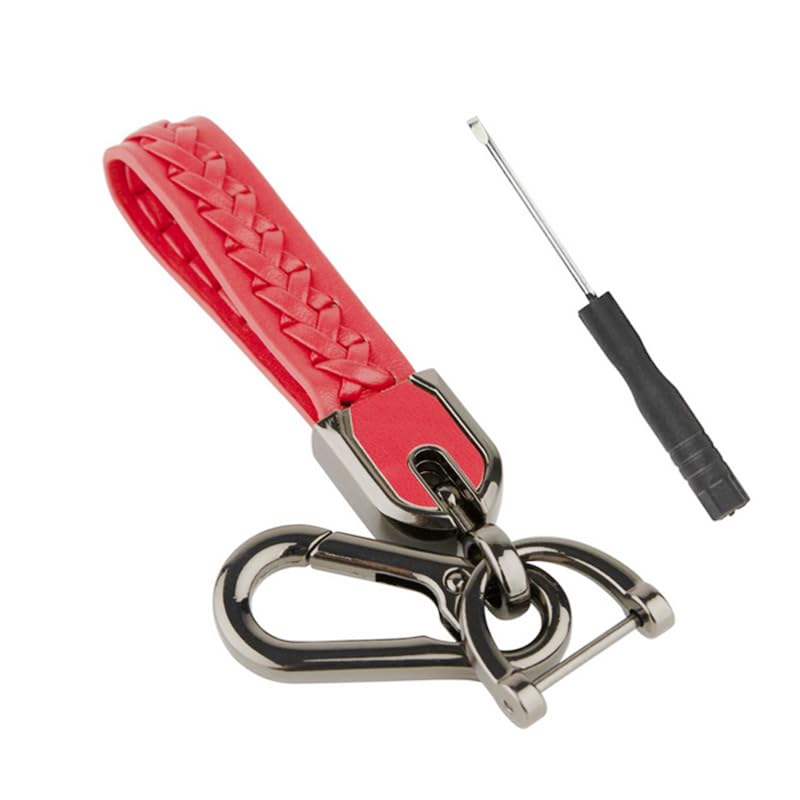 Generic - KaberMisr 2020 Car Keychain for Men, Metal Braided Leather and Alloy Car Keychain with Screwdriver Suitable for Car, Motorcycle, Home Keys and Women (Braided Leather, Metal, Red, Code:9220)