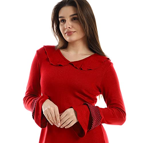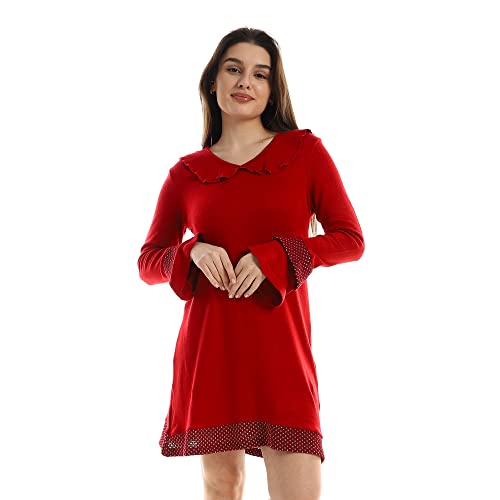 KADY - Kady Women Ruffled V Neck Long Sleeves Sleepshirt