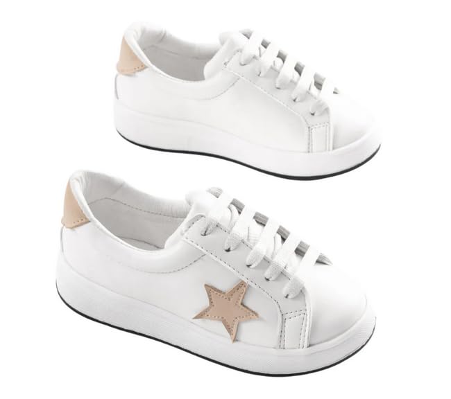 Katee - حذاء رياضي جلد ابيض مزين بنجوم للنساء من كاتي، تصميم برباط (ابيض، 33)