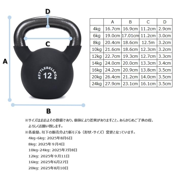 KETTLEBELLKON - Neoprene Kettlebell (Regular Type) 9.8 lbs (4 kg), 13.2 lbs (6 kg), 17.0 lbs (8 kg), 22.5 lbs (12 kg), 16 kg, 20 kg), 54.9 lbs (24 kg), Soft Material, Perfect for Home Use
