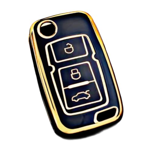 - Luxury car key case: stylish dark blue design cover with shiny gold frame adds sophisticated touch to your car key