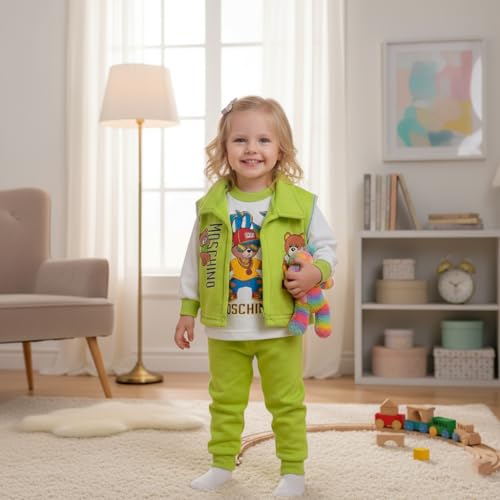 Generic - بيجاما خريفي للأطفال، بدلة 3 قطع طباعة كرتونية مبهجة و الوان متعددة ، بنطلون و تيشيرت وسترة كاجوال. عمر 9 : 12 شهر