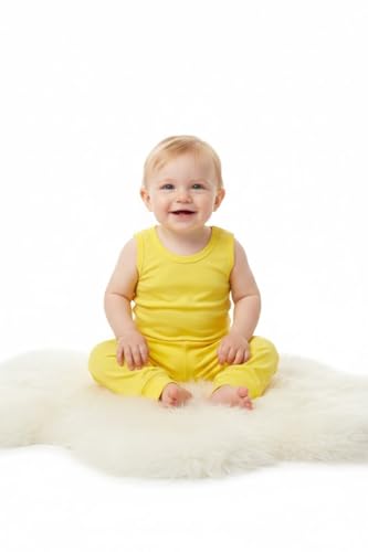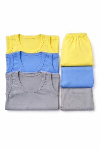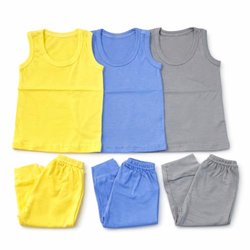 Orbella - Kids Cotton Underwear Set, 6 Pieces with 3 Sleeveless Tank Tops and 3 Pants, Soft Breathable Summer Innerwear for Boys and Girls, Yellow Blue Grey
