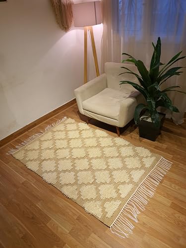 Kilim Studio - سجادة صوفية من كليم ستوديو، 1 × 1.5 متر، اوف وايت ومسطردة