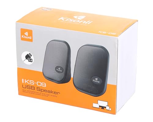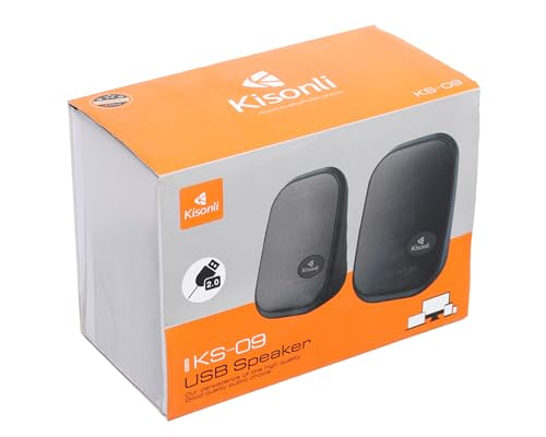 Kisonli - مكبر صوت صغير KS-09 بمنفذ USB 2.0 من كيسونلي، أسود