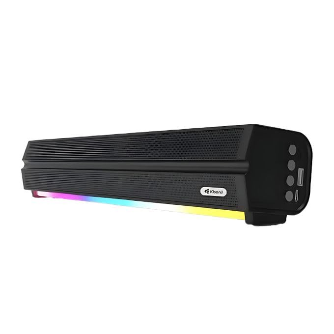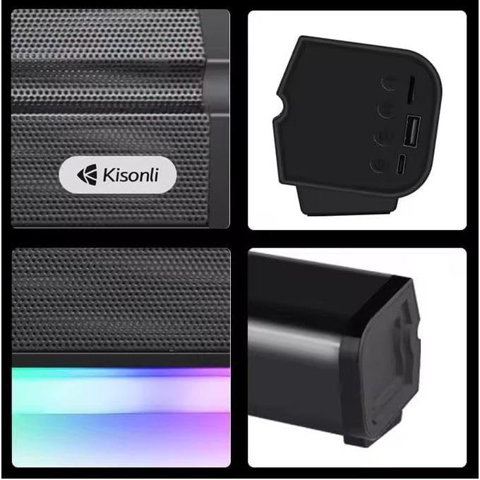 Kisonli - مكبر للصوت بإضاءة ليد 802 ار جي بي بمخرج صوت 5 وات وبطارية 5 ساعات وشحن من النوع سي من كيسونلي، لون أسود