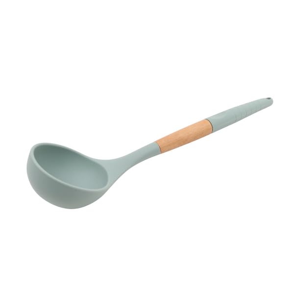 Generic - مغرفة تقديم سيليكون للمطبخ بمقبض خشبي، اخضر سيج