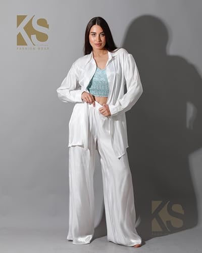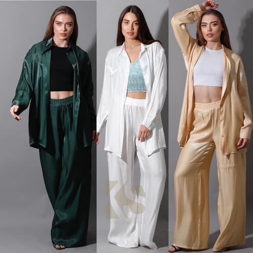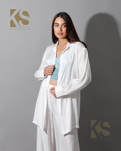 KOMA - KOMA Women Shemer Long Shirt & Wide Leg Trousers Set