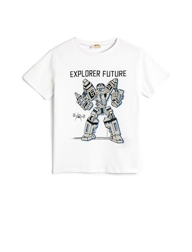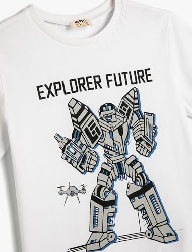 KOTON - KOTON Boys Short Sleeve Crew Neck Robot Printed Tshirt
