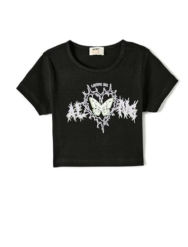 KOTON - KOTON Girls Crop T-Shirt Printed Ribbed Modern (pack of 1)