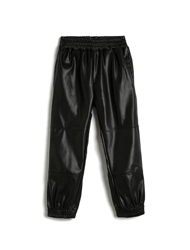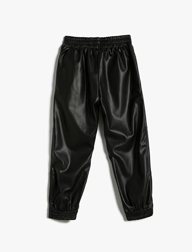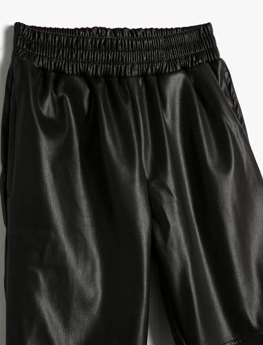KOTON - KOTON Girls Faux Leather Jogger Pants Elastic Waistband Pockets Jogger