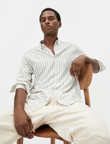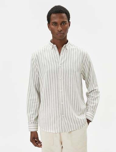 KOTON - KOTON mens Classic Neck Buttoned Long Sleeve Slim Fit Shirt