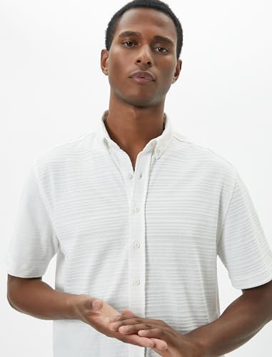 KOTON - KOTON Mens Classic Neck Textured Buttoned Short Sleeve Shirt Button Down Shirt (pack of 1)