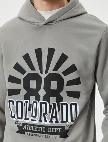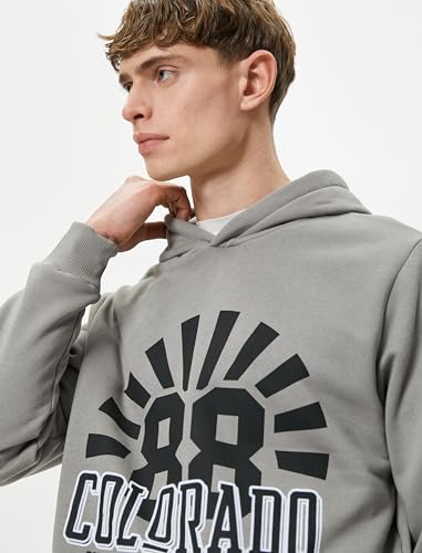 KOTON - KOTON mens College Printed Long Sleeve Hooded Sweatshirt