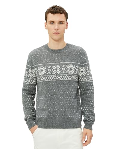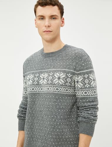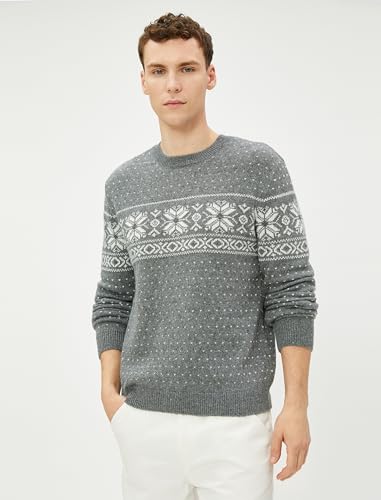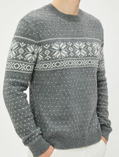 KOTON - KOTON mens Crew Neck Ethnic Patterned Blended Wool Pullover