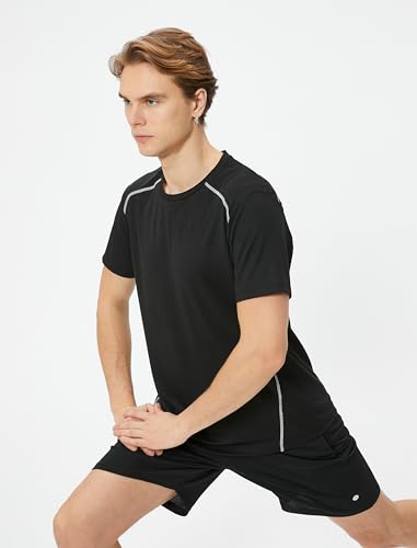 KOTON - KOTON mens Seam Detail Crew Neck Short Sleeve Sport Tshirt