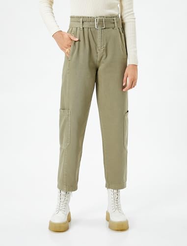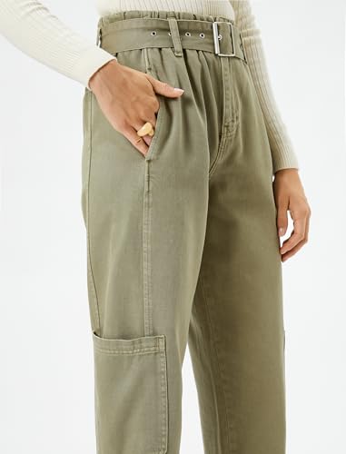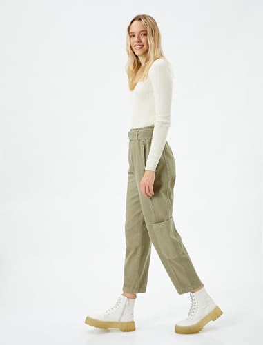KOTON - بنطلون بأرجل وحزام وجيوب للنساء من كوتون