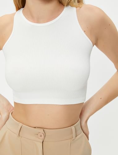KOTON - KOTON Womens Basic Crop Tank Top Round Neck Ribbed Classic (pack of 1)