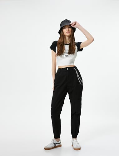 KOTON - KOTON womens Cargo Jogger Chain Detail High Rise Trousers
