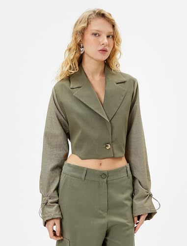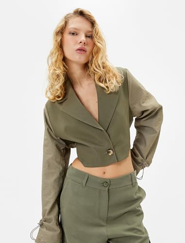 KOTON - كوتون جاكيت نسائي قصير من القماش المزدوج بأساور عريضة مرنة وياقة مطوية