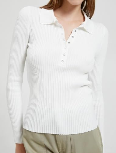 KOTON - كنزة بولوفر من كوتون بياقة بولو للنساء، قصة عادية بأكمام طويلة، لون كاميل، مقاس كبير