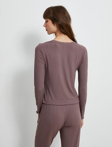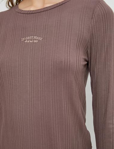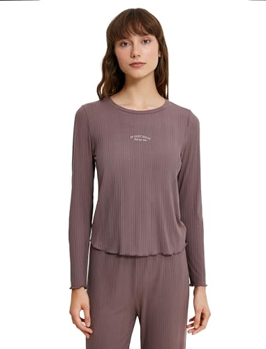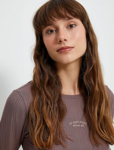 KOTON - KOTON womens Long Sleeve Crew Neck Slogan Embroidered Pyjama Top Pajamas Top (pack of 1)