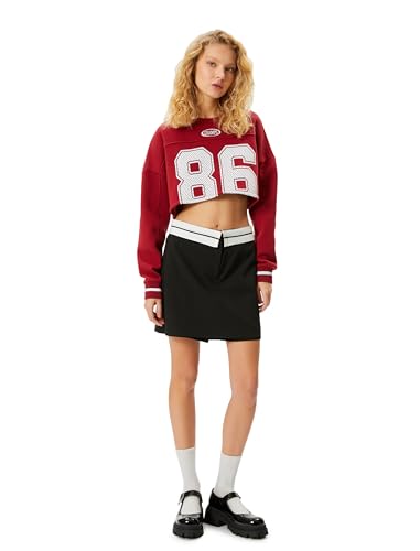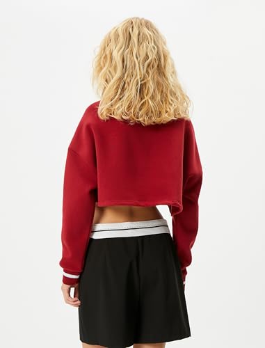 KOTON - KOTON womens Printed Crop Long Sleeve Crew Neck Sweatshirt