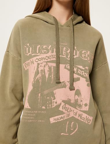 KOTON - KOTON womens Printed Soft Interior Long Sleeve Washed Effect Hoodie