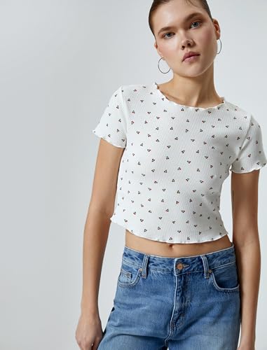 KOTON - KOTON womens Short Sleeve Crop Tshirt