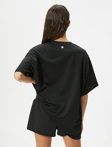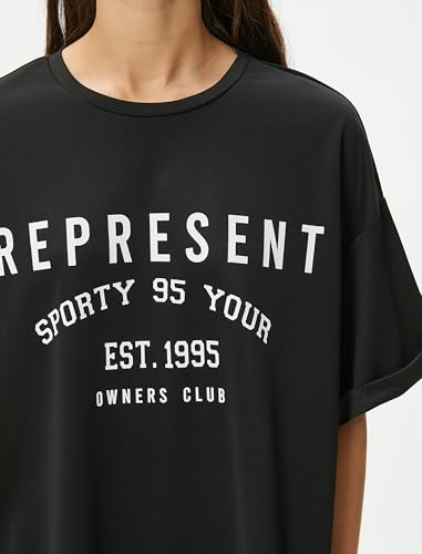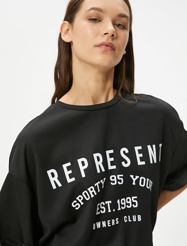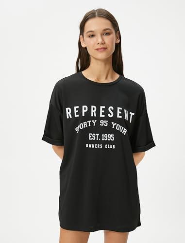 KOTON - KOTON womens Sport Oversized Extra Long Printed Crew Neck Tshirt