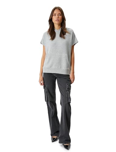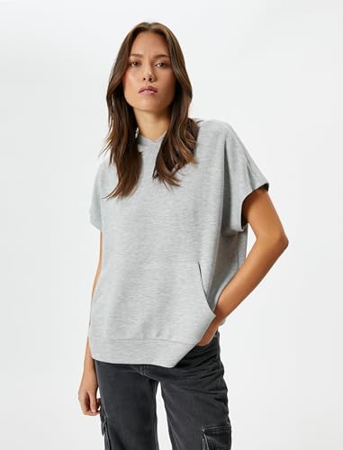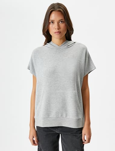 KOTON - KOTON womens Viscose Kangaroo Pocket Detail Short Sleeve Hooded hirt Sweatshirt
