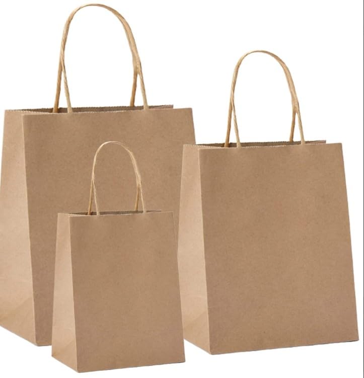 Generic - اكياس ورق كرافت هدية مع مقابض، احجام متنوعة من ورق كرافت سادة للاعمال الصغيرة وشنط التسوق والحفلات (بني، 30 × 40)