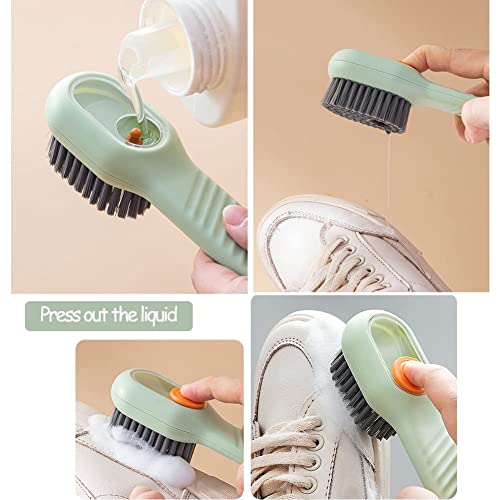 - Our cleaning brush with soap dispenser is suitable for many places, for example, it can be used to clean bowls, basins, clothes, tables, walls and kitchens, living rooms, bathrooms, etc.the bristles provide safe, gentle cleaning.